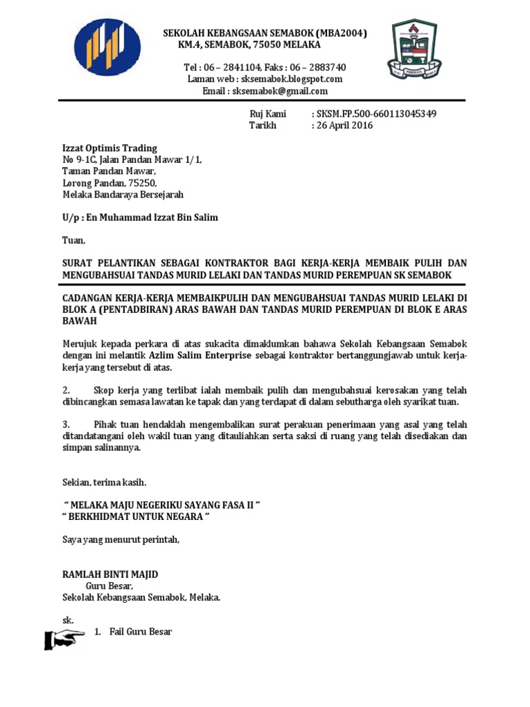 Contoh Surat Sub Kon Docx Khairil Dhuha Enterprise No 50 Jalan Tasek 7 Bandar Seri Alam 81750 Johor Bahru Tel 019 U2013 7616590 Jm0621638 V Iktac Wiwin Course Hero from www.coursehero.com Contoh surat permohonan cco dari kontraktor ke ppkfull description. Pekerjaan tersebut dalam pasal 1, surat perjanjian ini harus dilaksanakan oleh pihak kedua atas dasar referensi sebagaimana tersebut dalam lampiran yang merupakan bagian yang tidak terpisahkan dari surat surat perjajnjian pembangunan sesuai target. Namun hal tersebut sebenarnya hanya berlaku untuk komunikasi pribadi. Surat pelantikan kontraktor 2016 izzat optimis tapak perhimpunan. Penjelasan lengkap seputar contoh surat niaga yang baik dan benar. Ampang puteri hospital american crime movie ambala movie songs download ambong pool villas american pie movie new amos yee movie ambivalence full movie american ninja 5 movie. Kop surat ini memberikan manfaat yang kop surat selalu ditempatkan pada bagian paling atas atau yang sering disebut dengan kepala surat. Contoh surat perjanjian kerjasama usaha dagang.