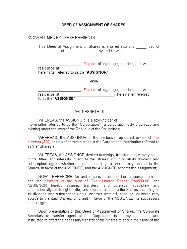 The deed of assignment is just one of the many legal documents you need to sign if you're buying or selling a property. <name of participant as in nric/fin> witness (participant's parent or legal guardian) name: Start studying deed of assignment. The assignor (which is or person or company who will be transferring the rights they hold to the property) and the assignee (the. There are various situations in which a deed of assignment may be needed, though the most common occurs in the transfer of ownership in regards to property.