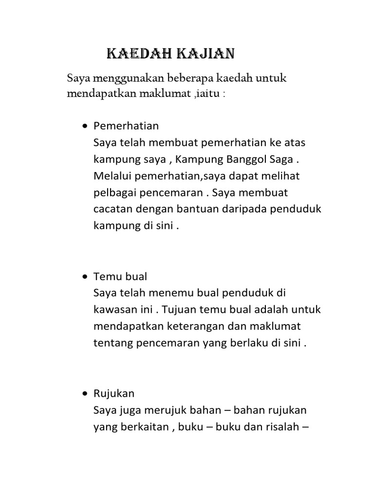 Kaedah kajian adalah satu usaha yang dilakukan secara individu atau berkumpulan bagi menyelesaikan sesuatu tugasan yang ingin di kaji. Contoh kaedah kajian tugasan sejarah pt3 2018 permohonan my. 1.4 kaedah kajian sebanyak 5 kaedah kajian telah dijalankan untuk mendapatkan maklumat secara terperinci dan bersistematik. Format dan contoh laporan kajian kes sejarah kssr sumber pendidikan. Objektif kajian masyarakat di kawasan tempat tinggal anda.berikut dikongsikan contoh objektif kajian kerja kursus sejarah pt3 2018 yang bertajuk :masyarakat di kawasan tempat tinggal anda.moga ianya boleh dijadikan panduan berguna buat pelajar tingkatan 3 dalam menyiapkan isi kandungan tugasan kerja kursus/ folio sejarah tahun ini.