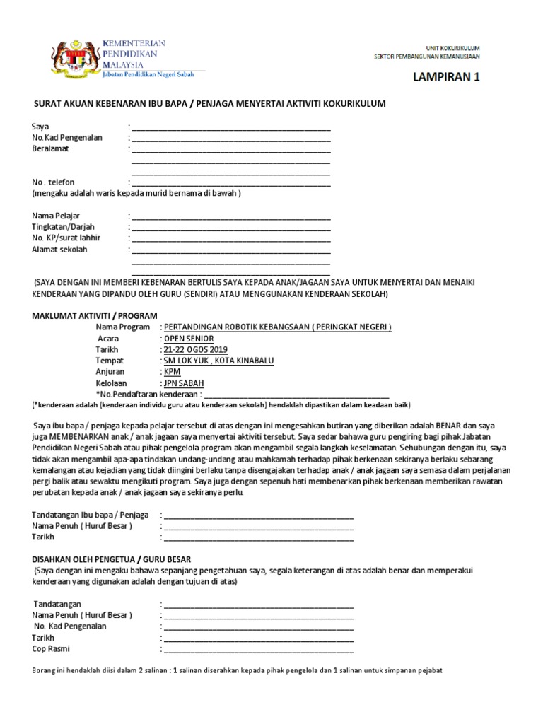 Surat Akuan Kebenaran Ibu Bapa/Penjaga Menyertai Aktiviti Kokurikulum / Buku Pengurusan Kokurikulum 2020 Flip Ebook Pages 1 48 Anyflip Anyflip - Posted by noorizan mohd esa at 10:58.