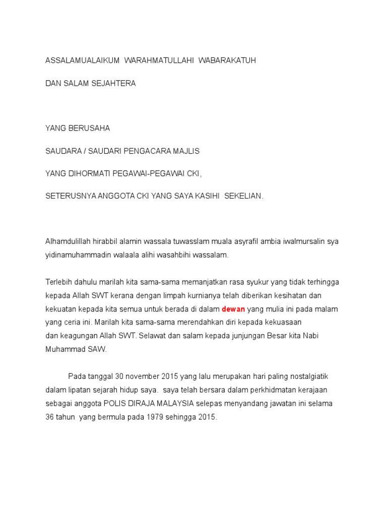 Related : Teks Ucapan Majlis Persaraan : Teks Ucapan Ydp Pibg Majlis Persaraan Pengetua Contoh Vv - Pn hjh noor hayati binti haji bakri..